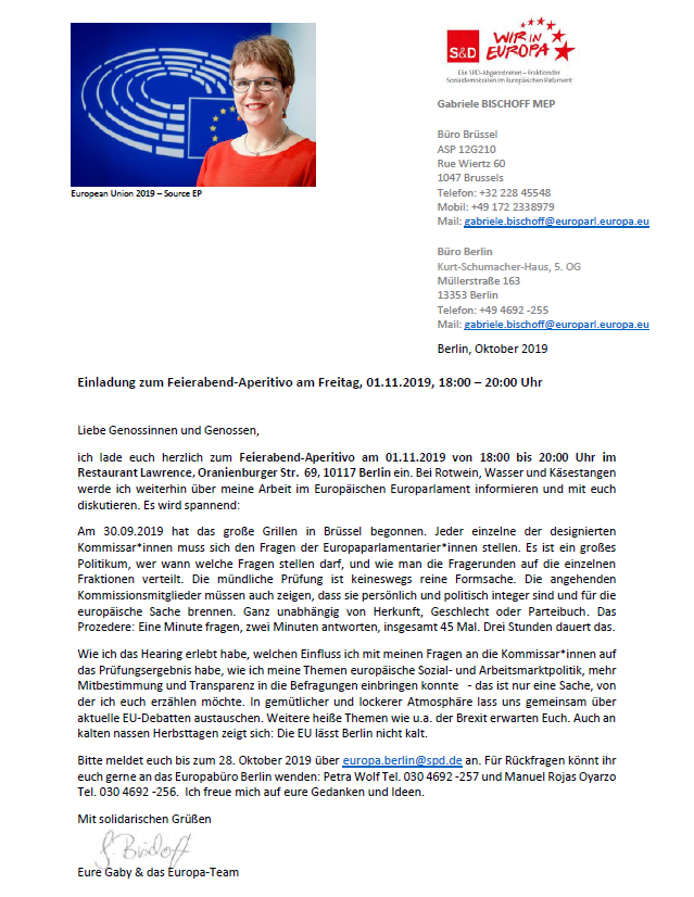 Darüber unterhält sich Gaby Bischoff, unsere MdEP, gerne mit Euch beim "Aperitivo-Abend" am